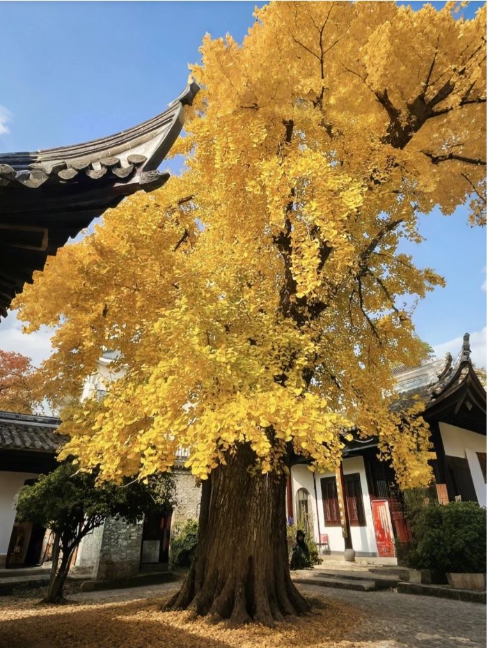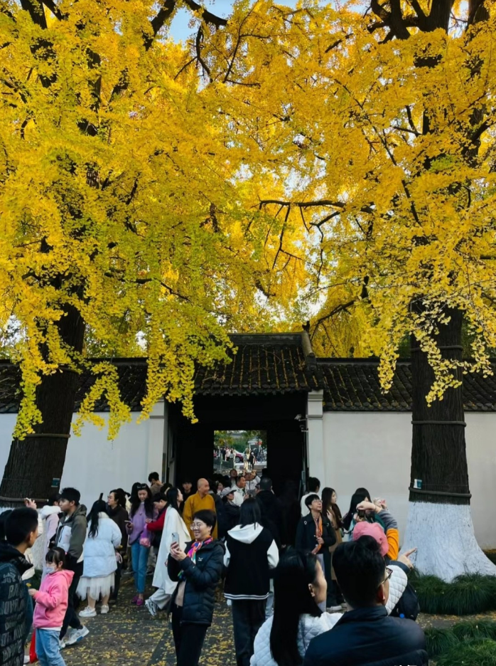 又到了一年秋黄时,各地的网友都出门欣赏银杏树的风采,今年江苏扬州史公祠的银杏绝对是顶流。