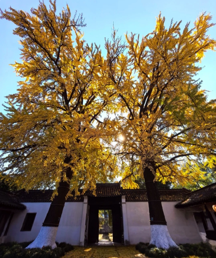 江苏扬州史可法纪念馆内这两棵大银杏树,约300岁树龄,11月末硬生生凭颜值走红,一跃成为成为扬州顶流。