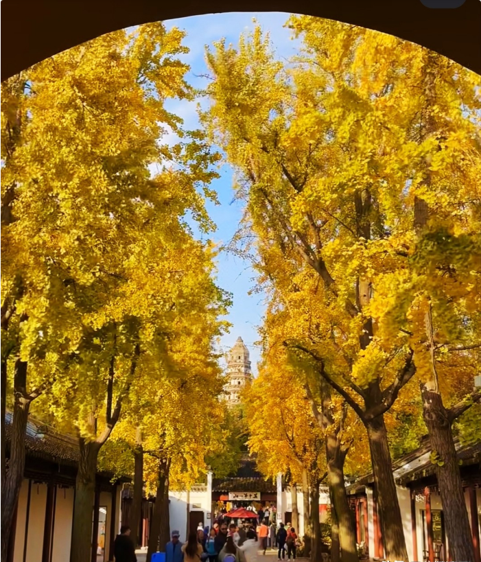 2、天宁寺:银杏配红墙,美如扬州小故宫!银杏季时满园金黄, 免费